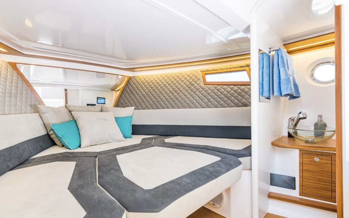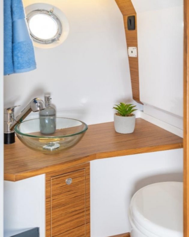 This model offers the most spacious cabin with a comfortable king-sized bed, separated heads and a full-height wardrobe. Access to the cockpit is extremely easy and safe to ensure the maximum comfort and allow for free movement while cruising.