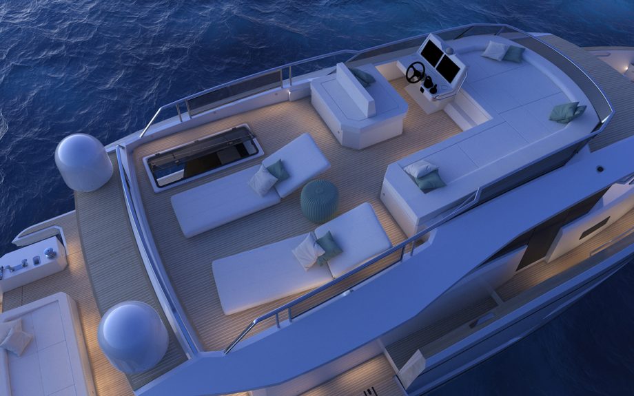 The concept of Endurance is also linked to the use of the boat for the longest possible time in maximum comfort: the maximum beam of more than five meters allows our designers to exploit the width of the boat to achieve generous internal volumes and better performance when planing at significant speeds.