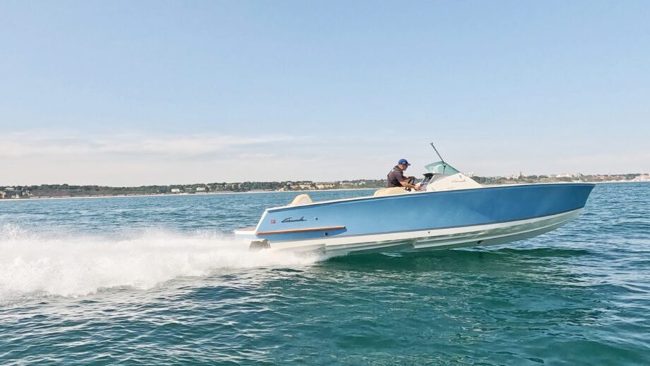At sea this translated to rapid acceleration with minimal bow lift needing almost no fore and aft trim on the outdrive leg once planing, as the efficiency was already designed in.